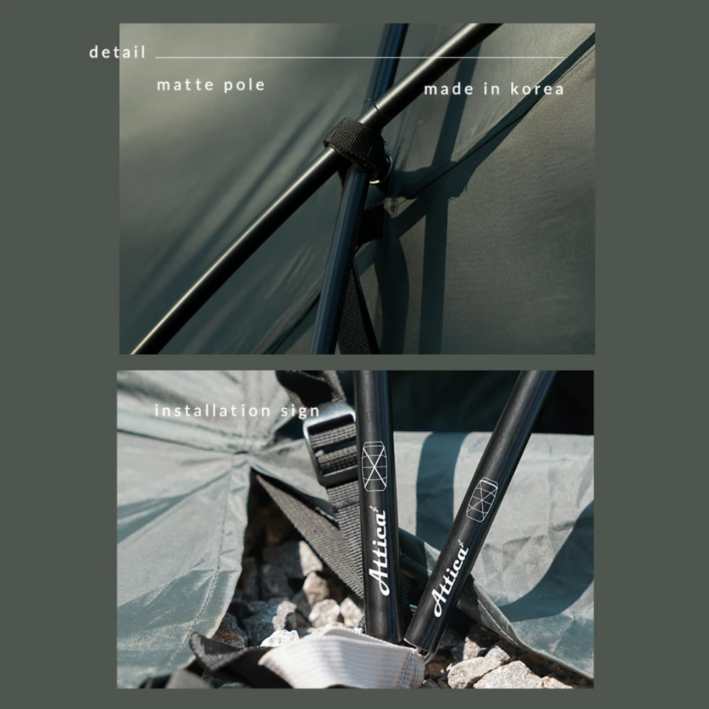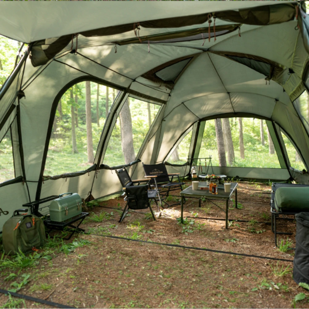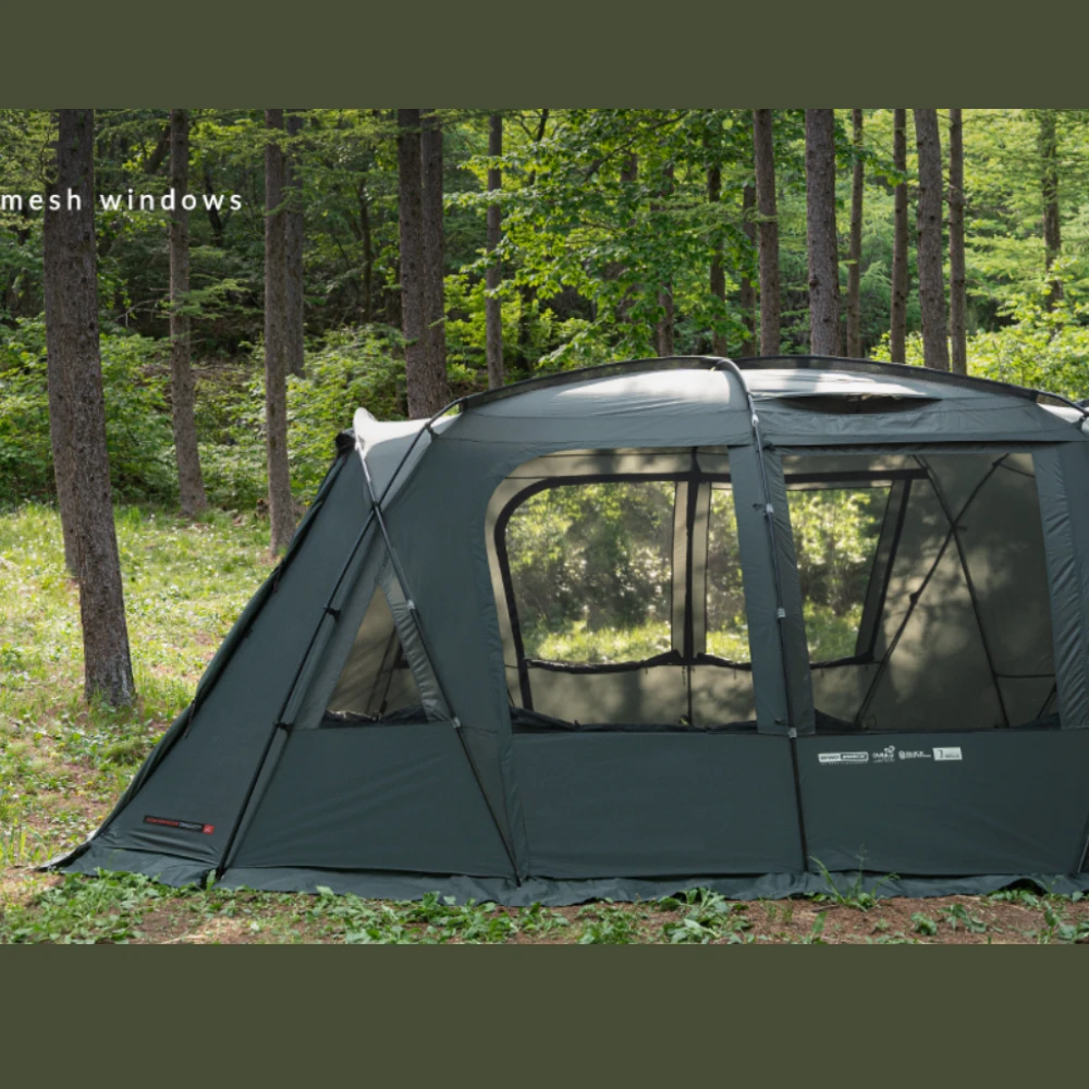 This is a premium large-scale living-shell tent that always provides a spacious and comfortable space. A zero-lux system with low light transmittance can be applied to the inner tent to provide a comfortable sleep when used. The roof has a black pigment coating with excellent light blocking properties. Dense and sturdy mesh windows are applied for smooth ventilation. You can always enjoy a pleasant camping life with the side screen that provides a private space.